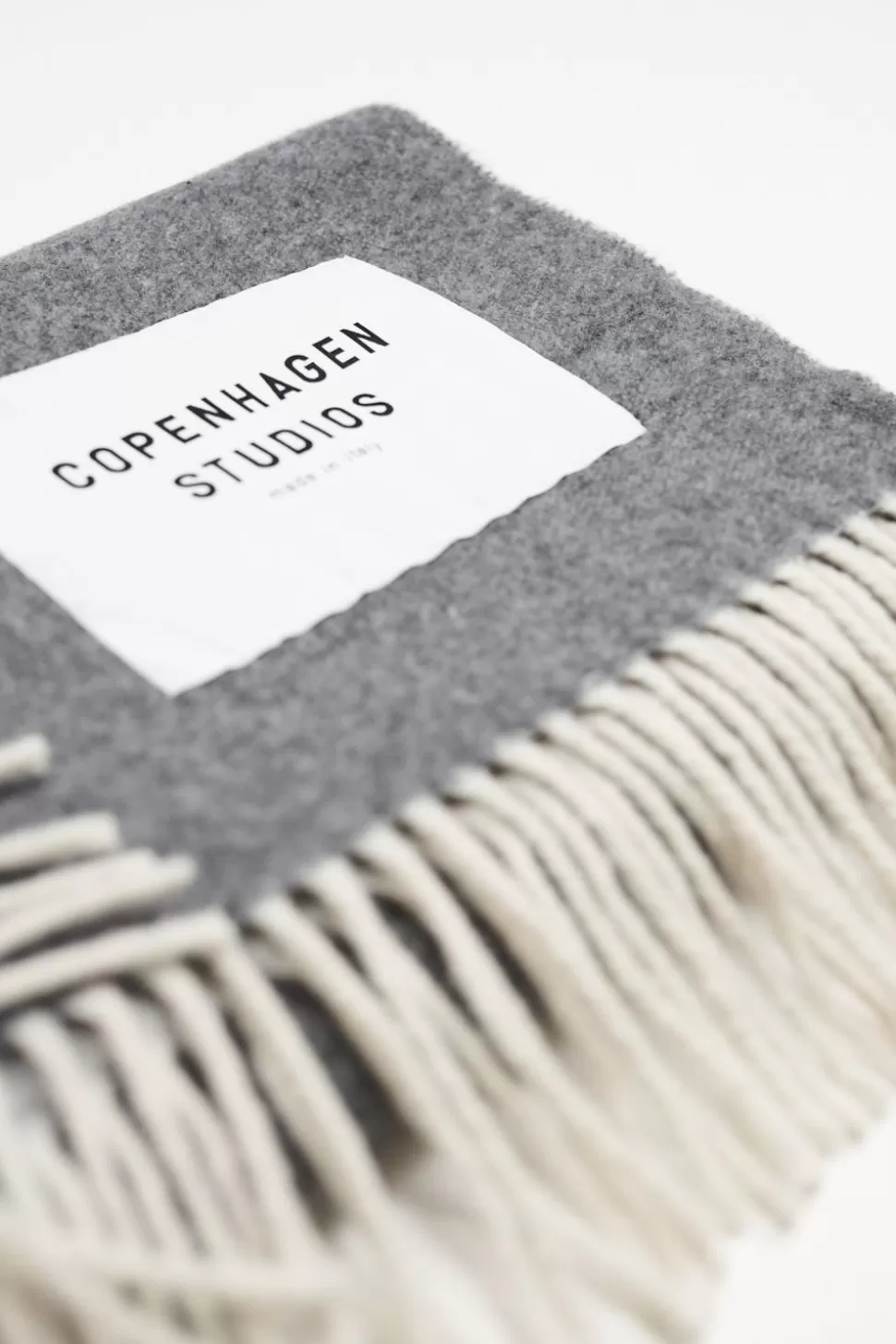 In Grijs. Sjaal Gemaakt Van Een Zachte Wolmix Met Logo. Rechthoekige Vorm In Een Oversized Look. Tweekleurig Ontwerp Met Franjes Aan De Randen. Deze Zachte Wollen Sjaal Is De Perfecte Metgezel Voor Koele Winterdagen. Onze Sjaals Zijn Ontworpen In Kopenhagen En Gemaakt In Italië.182 Cm X 49 Cm