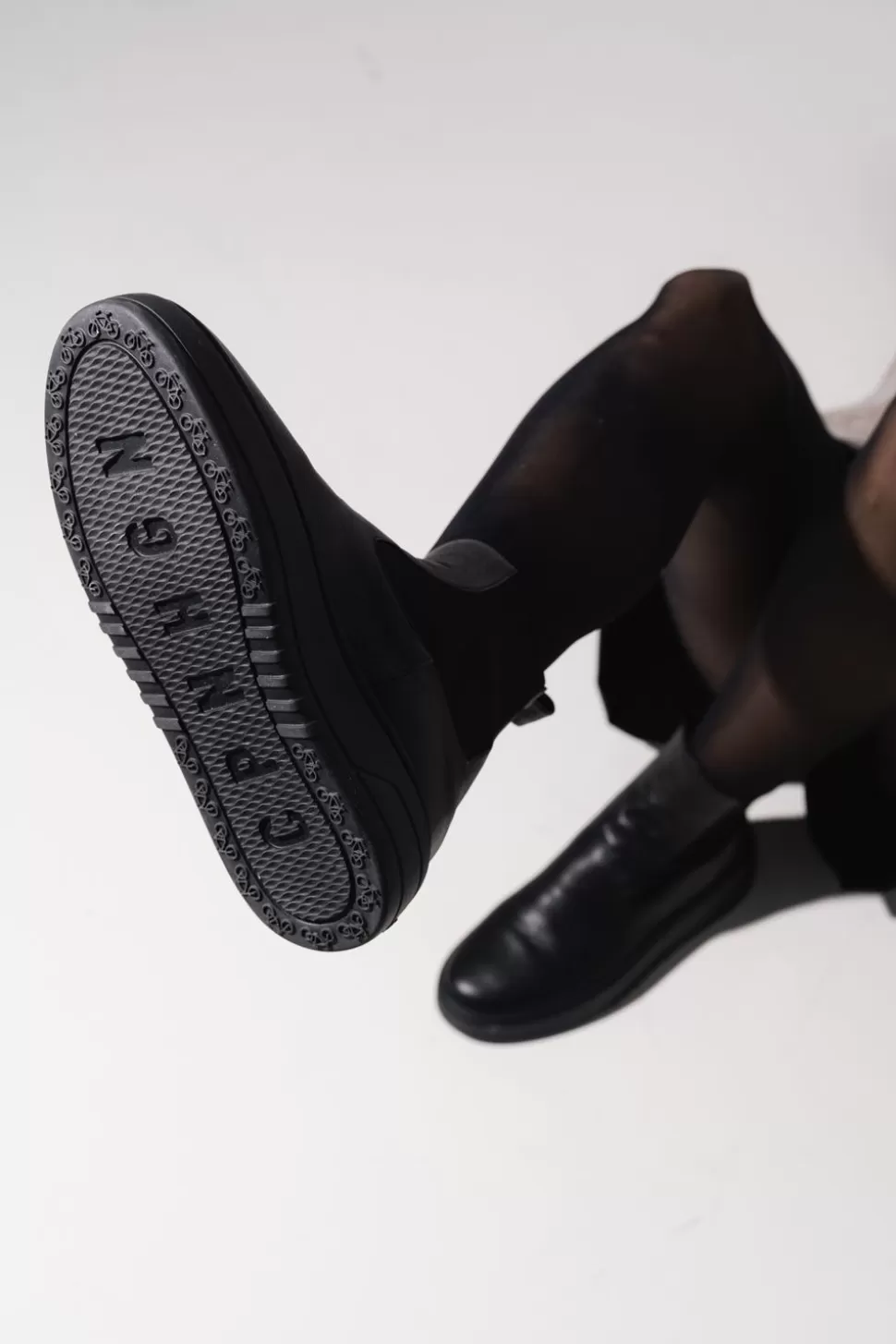 In Het Zwart. Sneakers In Sokstijl Gemaakt Van Glad Leer. Slank, Enkelhoog Silhouet. Trek Stijl Aan. Ronde Dop. Elastische Zijpanelen. Trek De Lus Aan De Schacht. Logoprint Aan De Buitenkant. Platte Platformzool Met Merklogo. Sneakers In Sokstijl Die Tegelijkertijd Licht En Relaxed Zijn.Onze Schoenen Zijn Ontworpen In Kopenhagen En Gemaakt In Europa. Het Leer Is Afkomstig Van Geselecteerde, Door Een Familie Gerunde Fabrieken In Italië.
