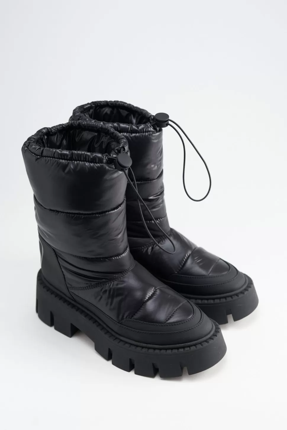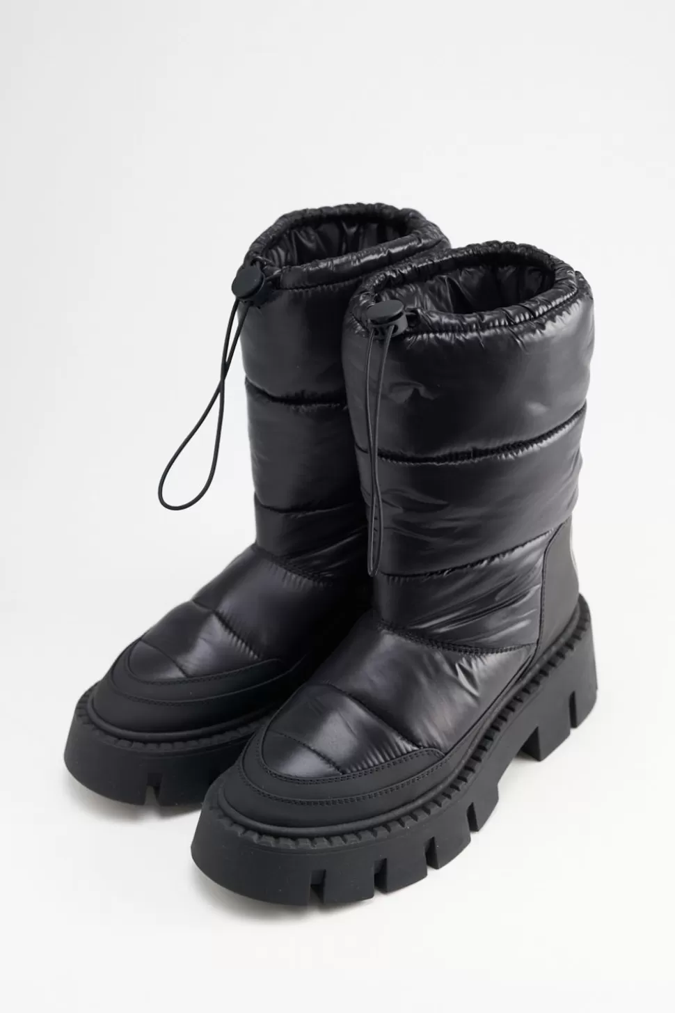 In Het Zwart. Sneeuwlaarzen Gemaakt Van Gerecycled Nylon. Middelhoog, Volumineus Silhouet. Gewatteerd Ontwerp. Trekkoord Bij De Opening. Ronde Dop. Spatbord Met Lipje En Merklogo Op De Hiel. Dikke Rubberen Zool Met Een Opvallend Profiel.Onze Schoenen Zijn Ontworpen In Kopenhagen En Gemaakt In Europa. Het Leer Is Afkomstig Van Geselecteerde, Door Een Familie Gerunde Fabrieken In Italië.