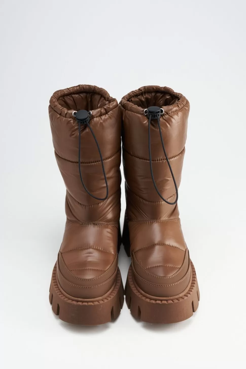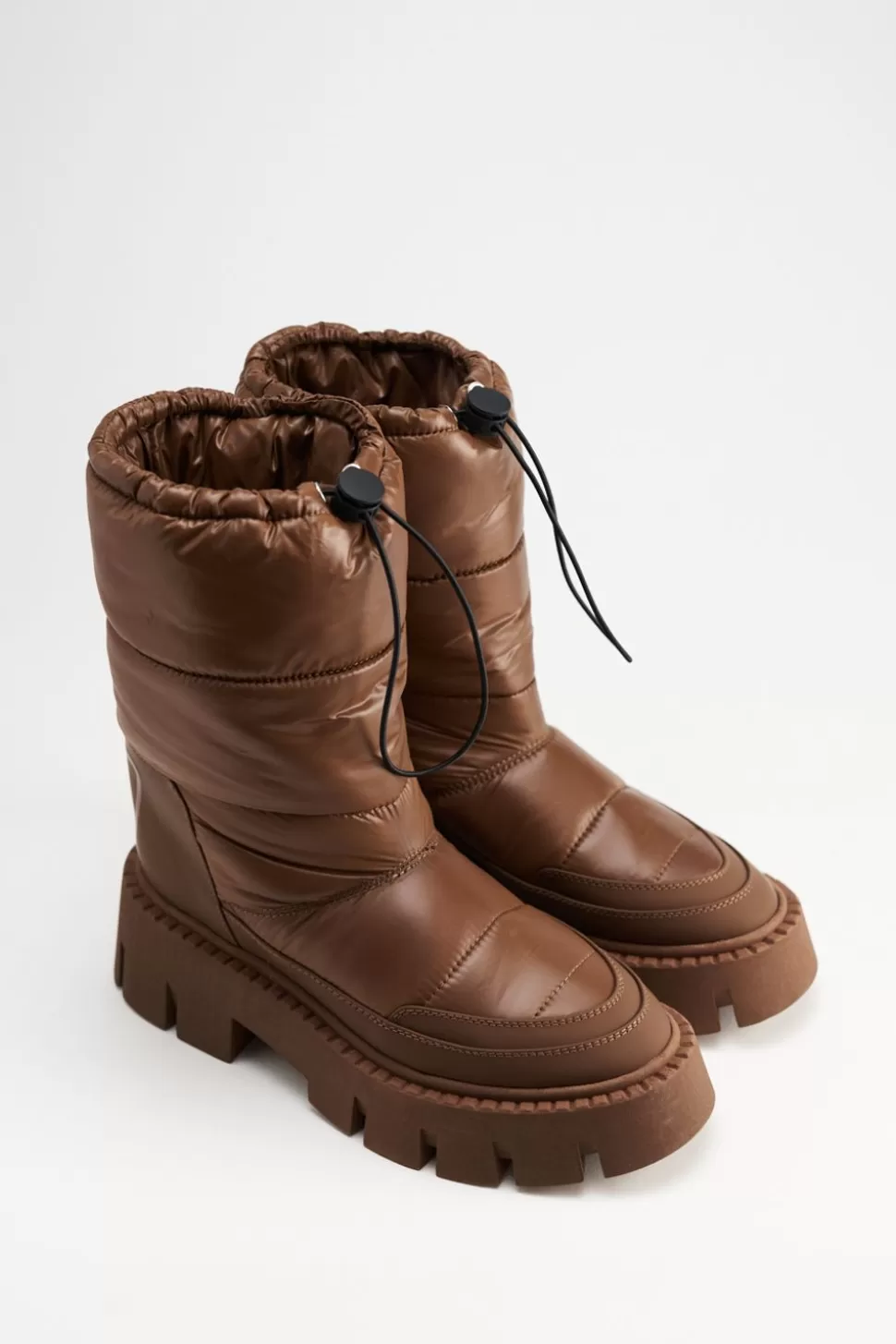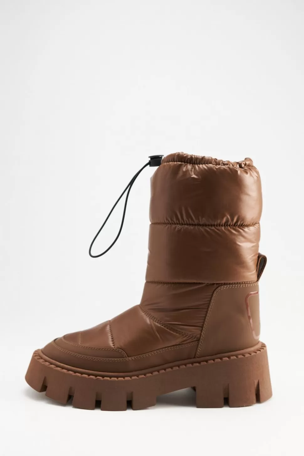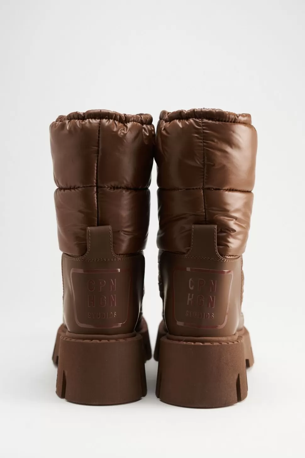 In Notenbruin. Sneeuwlaarzen Gemaakt Van Gerecycled Nylon. Middelhoog, Volumineus Silhouet. Gewatteerd Ontwerp. Trekkoord Bij De Opening. Ronde Dop. Spatbord Met Lipje En Merklogo Op De Hiel. Dikke Rubberen Zool Met Een Opvallend Profiel.Onze Schoenen Zijn Ontworpen In Kopenhagen En Gemaakt In Europa. Het Leer Is Afkomstig Van Geselecteerde, Door Een Familie Gerunde Fabrieken In Italië.