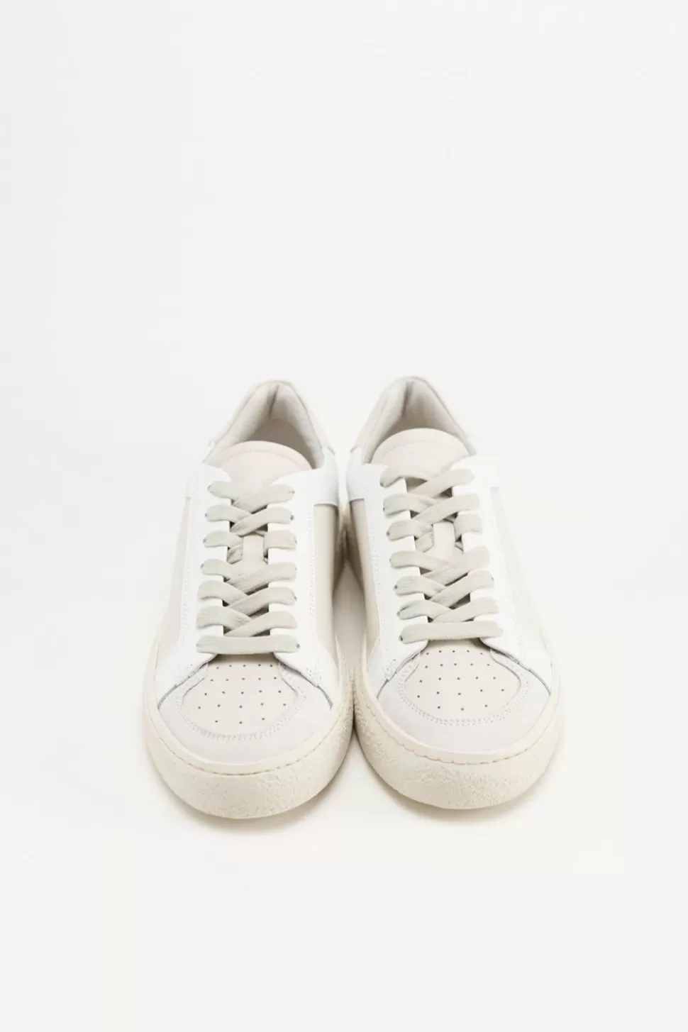 In Crèmebeige En Wit. Lage Sneakers Gemaakt Van Suède En Glad Leer. Minimalistisch Silhouet. Sacchetto-Stijl. Contrasterende Elementen Met Geborduurde Details En Kantpatronen. Logoprint Aan De Buitenkant. Vetersluiting Aan De Voorkant. Ronde Dop. Platte Gestructureerde Zool. Een Echte Allrounder, Expressief En Comfortabel Tegelijk.Onze Schoenen Zijn Ontworpen In Kopenhagen En Vervaardigd In Europa. Het Leer Is Afkomstig Van Geselecteerde, Door Een Familie Gerunde Fabrieken In Italië.