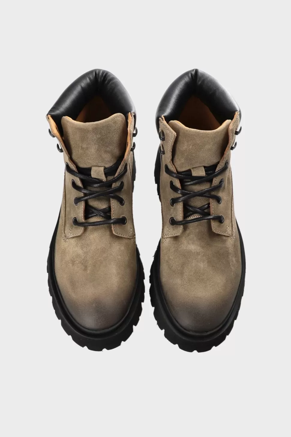 Enkelhoge Veterschoenen Gemaakt Van Gewaxt Suède. Trekking Silhouet. Vintage Elementen En Geborduurde Details. Logo Aan De Buitenkant. Vetersluiting Aan De Voorkant. Gevoerde Schacht. Ronde Neus. Robuuste Zool Met Grof Profiel, Blokhak En Spatbord. Vintage Elementen Geven Deze Laarzen Een Relaxte En Toch Hoogwaardige Uitstraling.Onze Schoenen Zijn Ontworpen In Kopenhagen En Gemaakt In Europa. Het Leer Is Afkomstig Van Geselecteerde, Door Een Familie Gerunde Fabrieken In Italië.