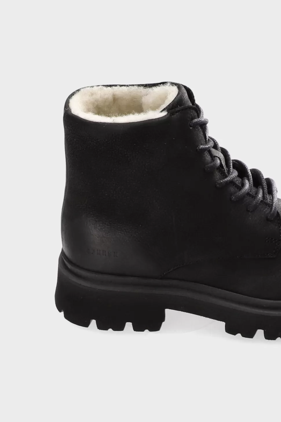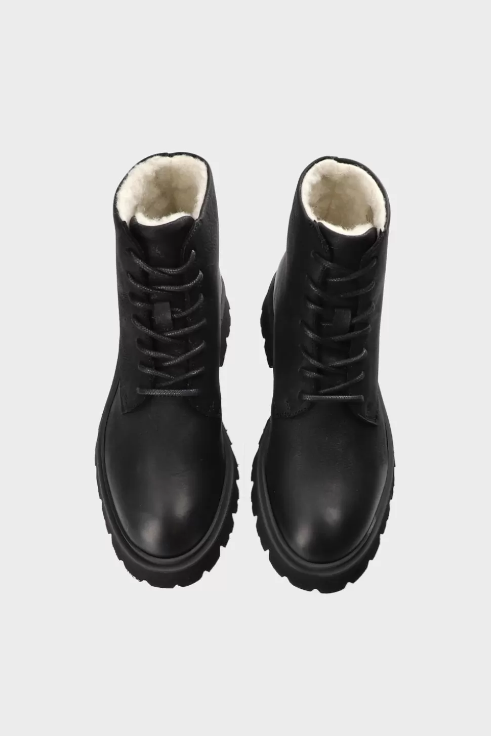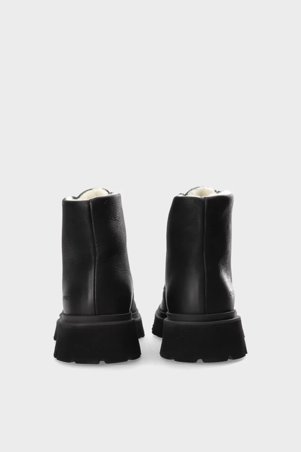 In Het Zwart. Enkelhoge Laarzen Gemaakt Van Gewaxt Nubuckleer. Gevechtsgeïnspireerd Silhouet. Eenvoudige Inzetstukken En Stiksels. Logo Aan De Buitenkant. Vetersluiting Met Metalen Beslag. Binnenkant Met Contrasterend Teddybont. Iets Taps Toelopend Teengedeelte. Weersbestendig. Gladde Eva Met Spatbord, Groeven En Gripprofiel. Wees Voorbereid Op Koudere Dagen Met Deze Stevige, Op Gevechten Geïnspireerde Laarzen.Onze Schoenen Zijn Ontworpen In Kopenhagen En Gemaakt In Europa. Het Leer Is Afkomstig Van Geselecteerde, Door Een Familie Gerunde Fabrieken In Italië.