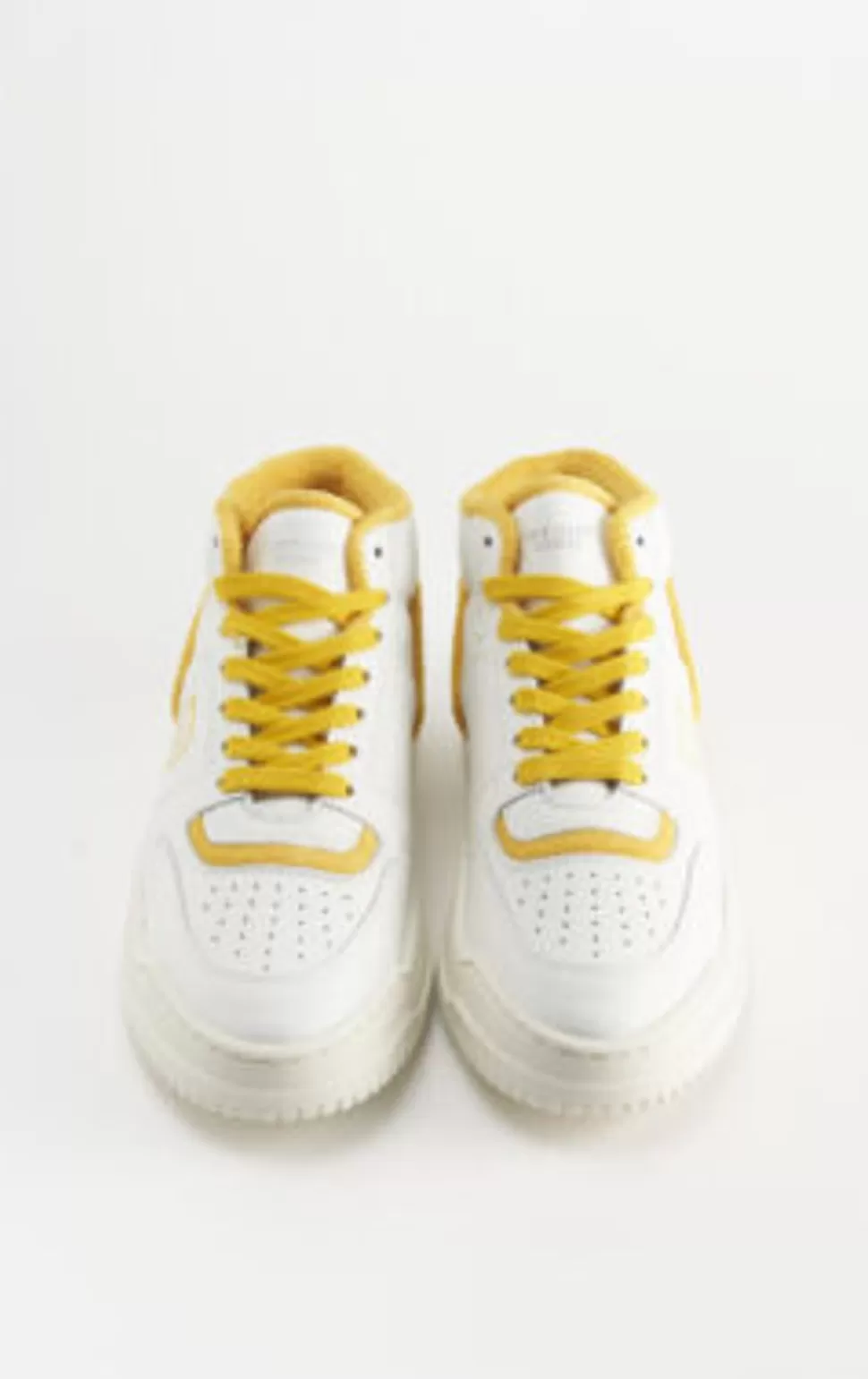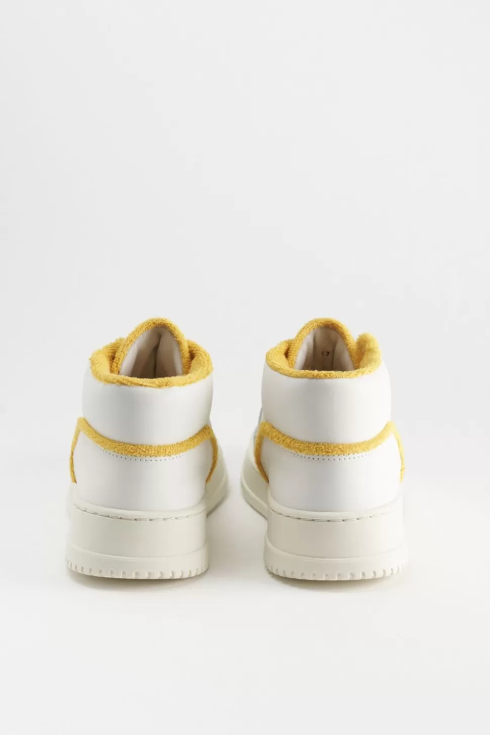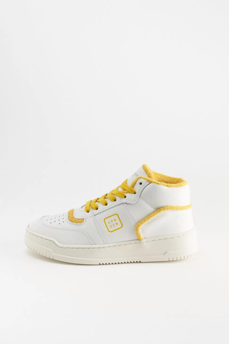 In Wit & Geel. Hoge Sneakers Gemaakt Van Glad Leer. Retrosilhouet. Gevoerde Schacht. Contrasterende Elementen Met Geborduurde Details En Kantpatronen. Logo-Statement In Reliëf Aan De Buitenkant. Vetersluiting Aan De Voorkant. Ronde Dop. Platte Gestructureerde Rubberen Zool. Een Expressieve Retrostijl Met Kleurrijke Accenten.Onze Schoenen Zijn Ontworpen In Kopenhagen En Vervaardigd In Europa. Het Leer Is Afkomstig Van Geselecteerde, Door Een Familie Gerunde Fabrieken In Italië.