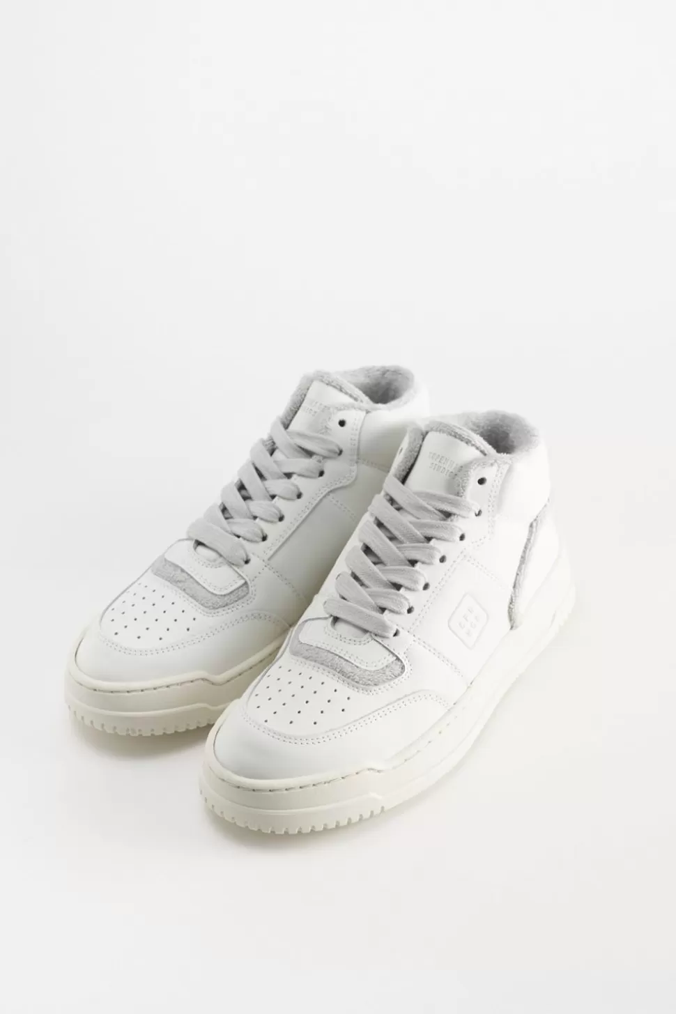 In Wit En Lichtgrijs. Hoge Sneakers Gemaakt Van Glad Leer. Retrosilhouet. Gevoerde Schacht. Contrasterende Elementen Met Geborduurde Details En Kantpatronen. Logo-Statement In Reliëf Aan De Buitenkant. Vetersluiting Aan De Voorkant. Ronde Dop. Platte Gestructureerde Rubberen Zool. Een Expressieve Retrostijl Met Lichte Accenten.Onze Schoenen Zijn Ontworpen In Kopenhagen En Vervaardigd In Europa. Het Leer Is Afkomstig Van Geselecteerde, Door Een Familie Gerunde Fabrieken In Italië.