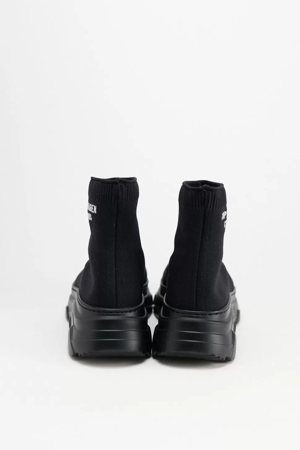 In Het Zwart. Sneakers In Sokstijl Gemaakt Van Gerecycled Nylon. Nauwsluitend, Enkelhoog Silhouet. Trek Stijl Aan. Contrasterende Branding Aan De Buitenkant. Ronde Dop. Dikke Platformzool Met Geometrische Details. Sportieve Sneakers In Sokstijl Voor Extra Comfort.Onze Schoenen Zijn Ontworpen In Kopenhagen En Gemaakt In Europa.