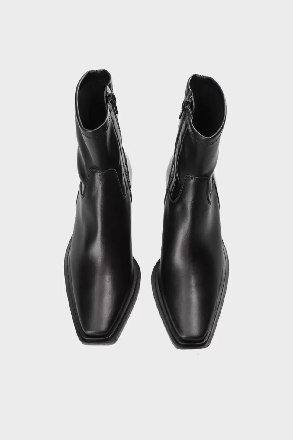 In Het Zwart. Hoge Enkellaarzen Gemaakt Van Stretchleer. Texano Boots Geïnspireerd Silhouet. Smalle Schacht. Aparte Elementen. Geborduurde Details. Rits Aan De Binnenkant. Rechthoekig Gevormd, Spitse Neus. Gladde Rubberen Zool Met Schuine Blokhak. Expressieve Texano-Enkellaarzen Met Elegante Details.Onze Schoenen Zijn Ontworpen In Kopenhagen En Vervaardigd In Europa. Het Leer Komt Uit Geselecteerde Familiebedrijven In Italië.