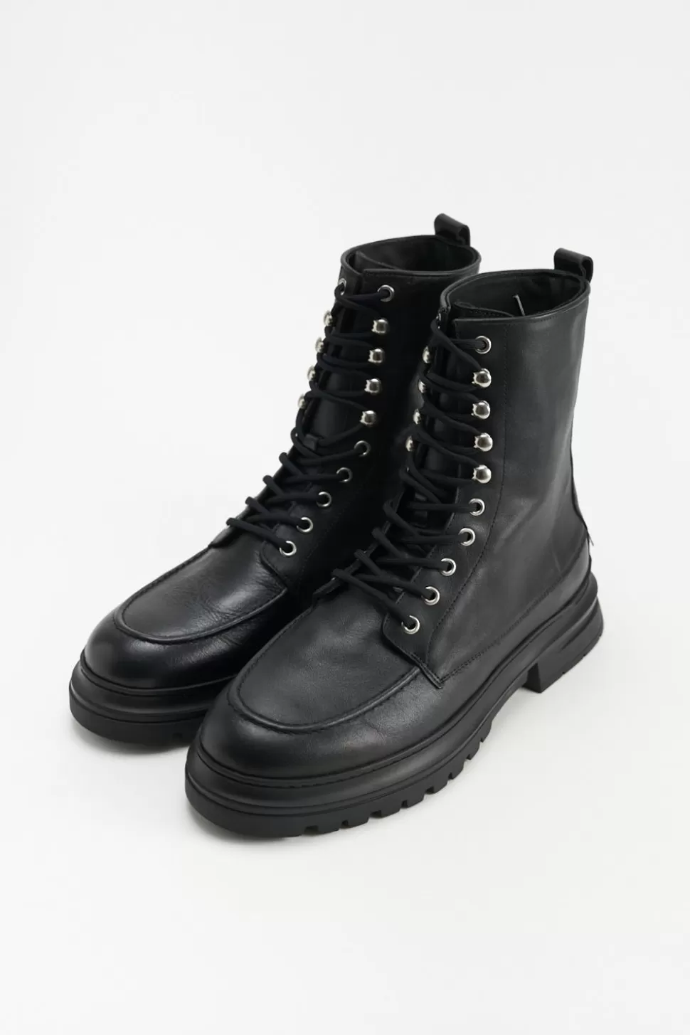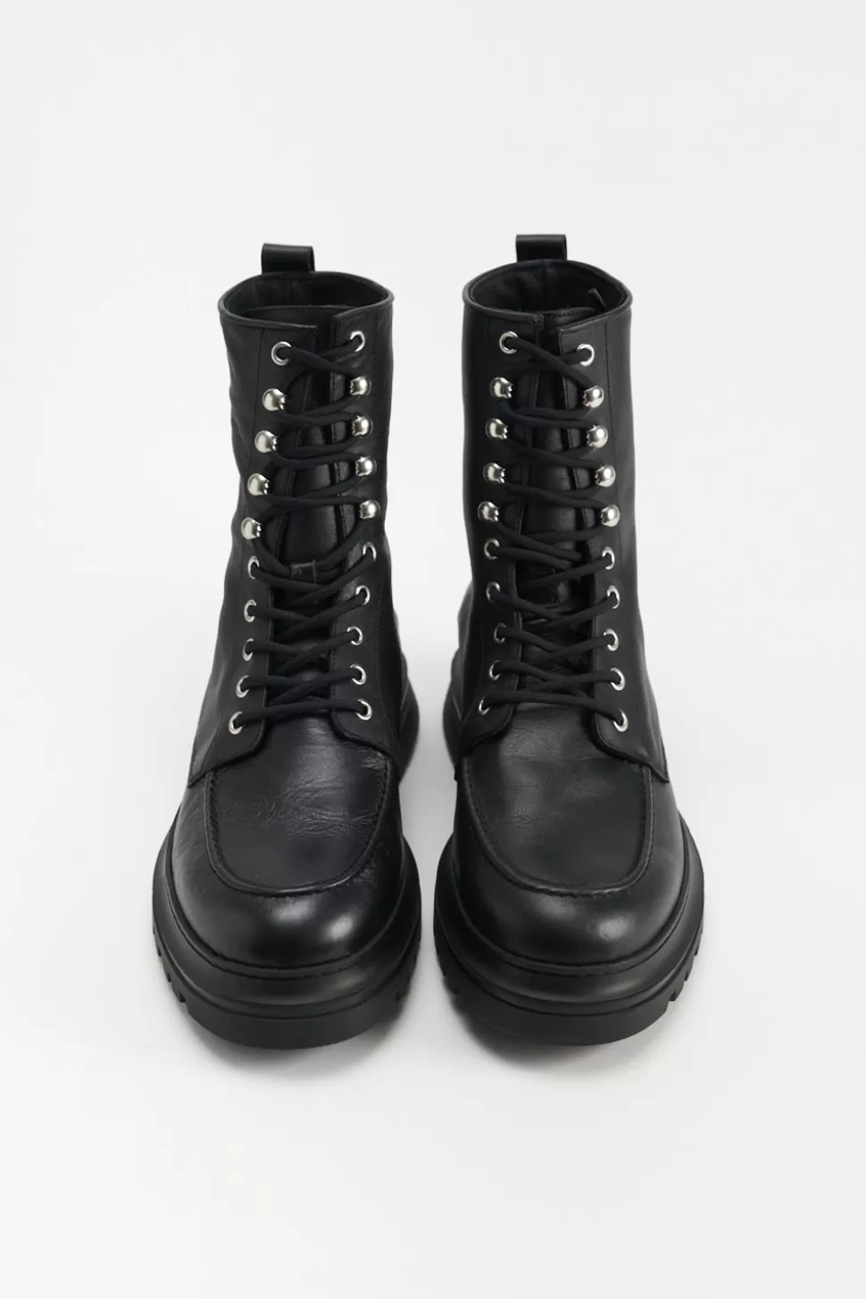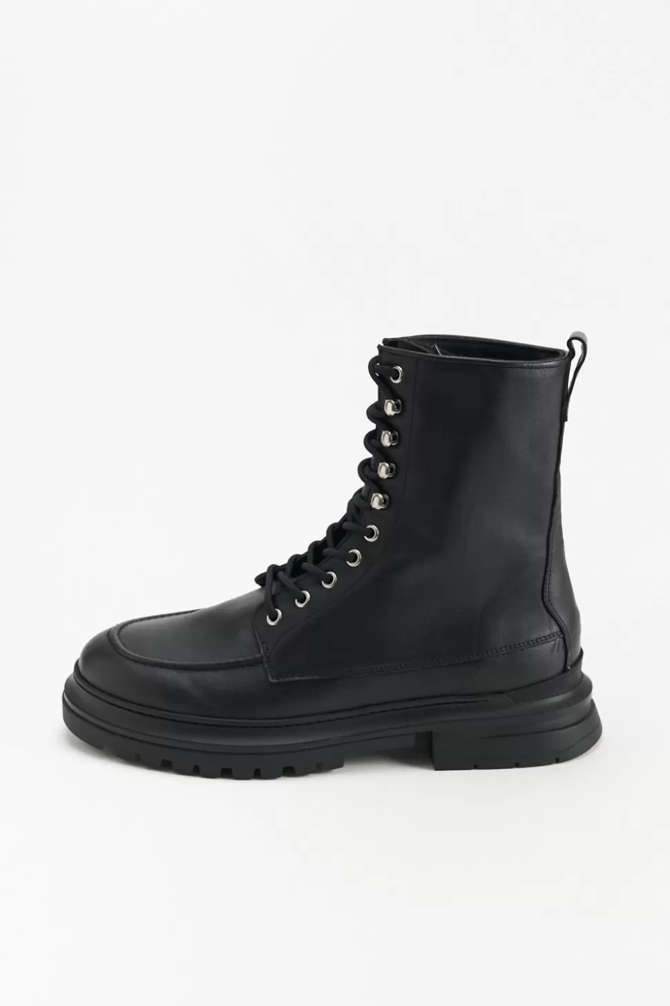 In Het Zwart. Veterlaarzen Gemaakt Van Glad Leer Met Een Matte Afwerking. Enkelhoog Silhouet. Afgeronde Dop. Mocassinelementen En Geborduurde Details. Zilverkleurige Oogjes En Haken. Tonale Veters. Trek De Lus Aan De Schacht. Verrassende Details Ontmoeten Alledaags Comfort.Onze Schoenen Zijn Ontworpen In Kopenhagen En Gemaakt In Europa. Het Leer Komt Uit Geselecteerde, Door Een Familie Gerunde Fabrieken In Italië.