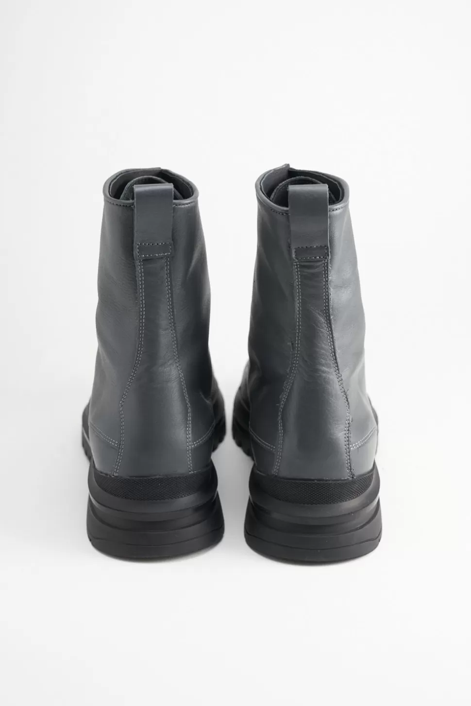 In Grafiet. Veterlaarzen Gemaakt Van Glad Leer Met Een Matte Afwerking. Enkelhoog Silhouet. Afgeronde Dop. Mocassinelementen En Geborduurde Details. Zilverkleurige Oogjes En Haken. Tonale Veters. Trek De Lus Aan De Schacht. Verrassende Details Ontmoeten Alledaags Comfort.Onze Schoenen Zijn Ontworpen In Kopenhagen En Gemaakt In Europa. Het Leer Komt Uit Geselecteerde, Door Een Familie Gerunde Fabrieken In Italië.