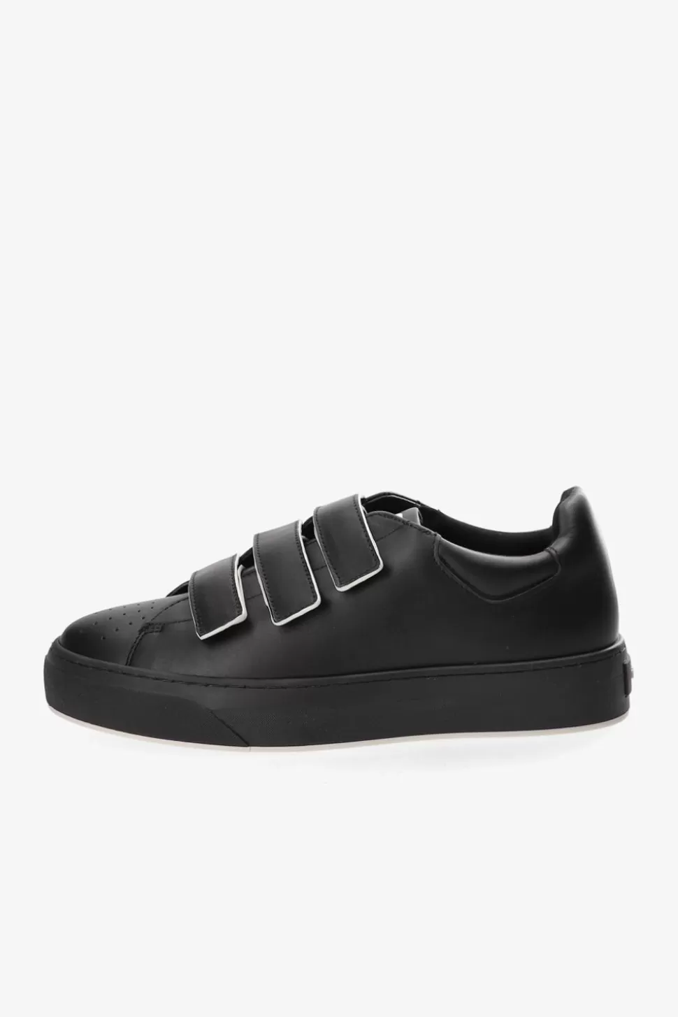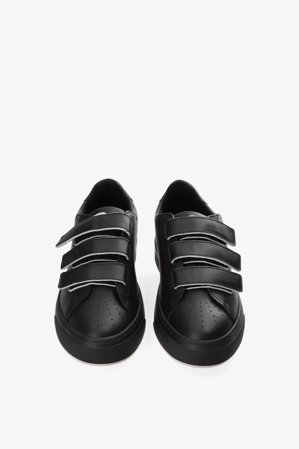 In Het Zwart. Lage Sneakers Gemaakt Van Zacht, Glad Leer. Retrosilhouet. Klittenbandsluiting. Geborduurde Details En Kantpatroon. Branding Op De Tong Van De Schoen. Ronde Dop. Rubberen Zool In Dezelfde Kleur Met Spatbord En Logo Op De Achterkant. Een Retrostijl Met Verfijnde Details.Onze Schoenen Zijn Ontworpen In Kopenhagen En Vervaardigd In Europa. Het Leer Is Afkomstig Van Geselecteerde Familiefabrieken In Italië