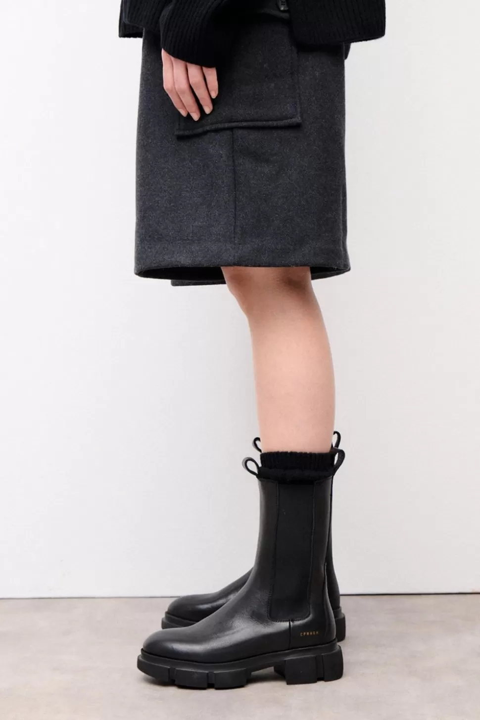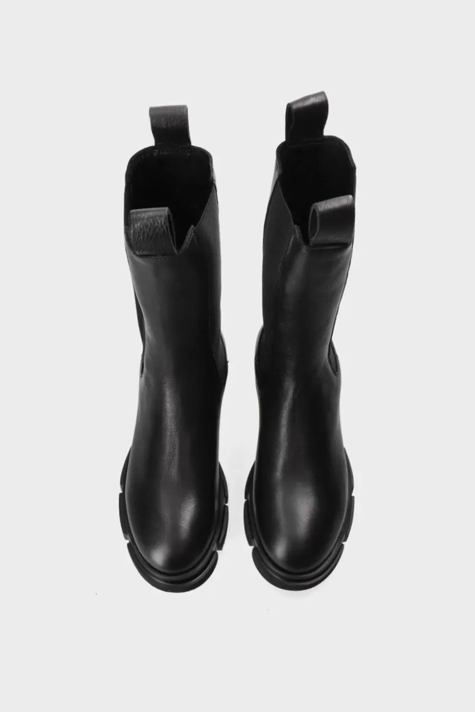 In Het Zwart. Midden Chelsea-Laarzen Gemaakt Van Glad Leer Met Een Grof Profiel. Langwerpig Chelsea-Silhouet. Elastische Inzetstukken. Ronde Dop. Twee Treklussen Op De Schacht. Subtiele Branding Aan De Buitenkant. Een Ontspannen Maar Toch Expressieve Stijl Die De Aandacht Trekt.Onze Schoenen Zijn Ontworpen In Kopenhagen En Vervaardigd In Europa. Het Leer Komt Uit Geselecteerde, Door Een Familie Gerunde Fabrieken In Italië.