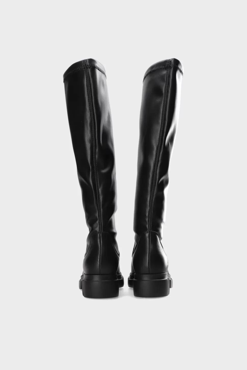 In Het Zwart. Hoge Laarzen Gemaakt Van Glad Leer En Vegan Materiaal Met Een Lichte Stretch. Slank Silhouet. Loszittende As. Subtiele Branding Aan De Buitenkant. Klaar Om Een Echt Statement Te Maken.Onze Schoenen Zijn Ontworpen In Kopenhagen En Gemaakt In Europa. Het Leer Is Afkomstig Van Geselecteerde, Door Een Familie Gerunde Fabrieken In Italië.