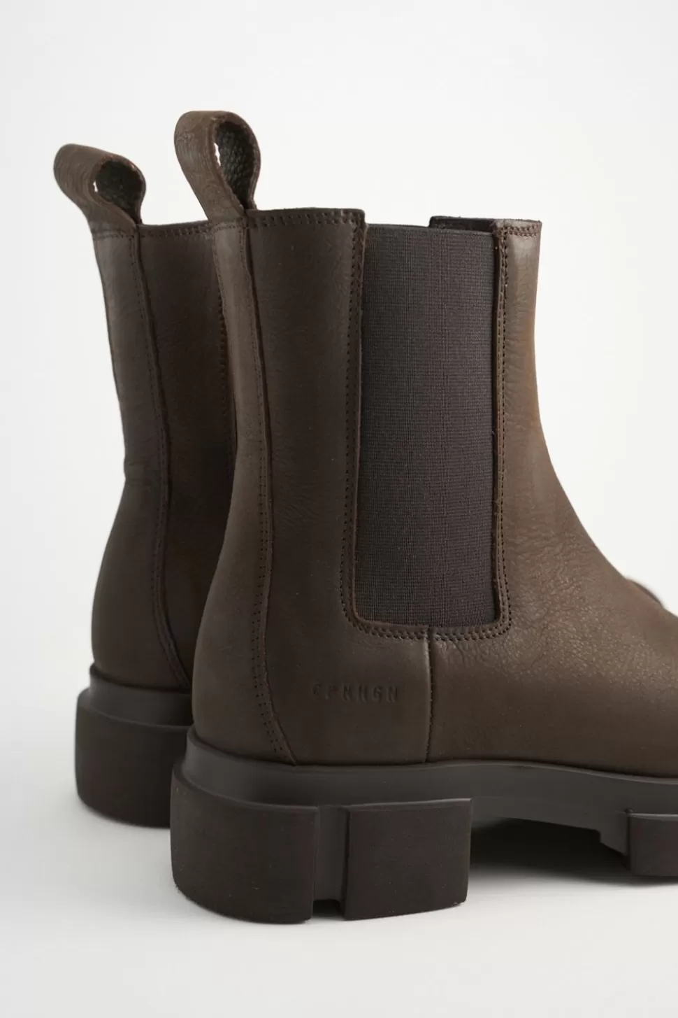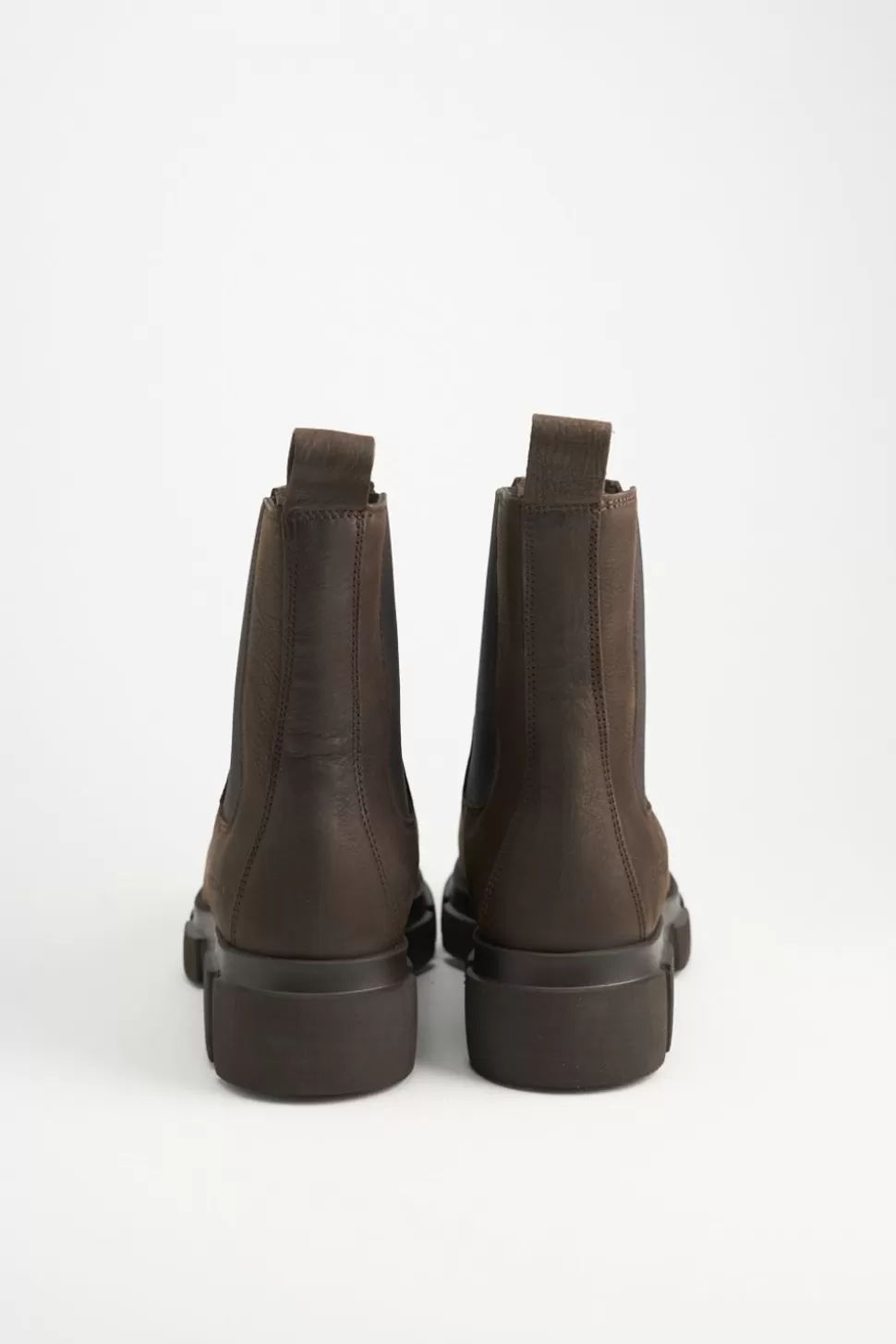 In Crèmebruin. Chelsealaarzen Gemaakt Van Gewaxt Leer. Enkelhoog Chelsea-Silhouet. Ronde Dop. Elastische Zijpanelen. Trek De Lus Aan De Schacht. Goudkleurig Logo Aan De Buitenkant. Een Expressieve Maar Toch Minimalistische Stijl.Onze Schoenen Zijn Ontworpen In Kopenhagen En Vervaardigd In Europa. Het Leer Is Afkomstig Van Geselecteerde, Door Een Familie Gerunde Fabrieken In Italië.