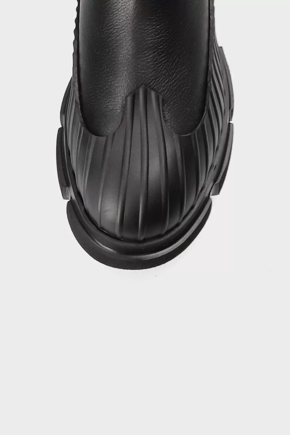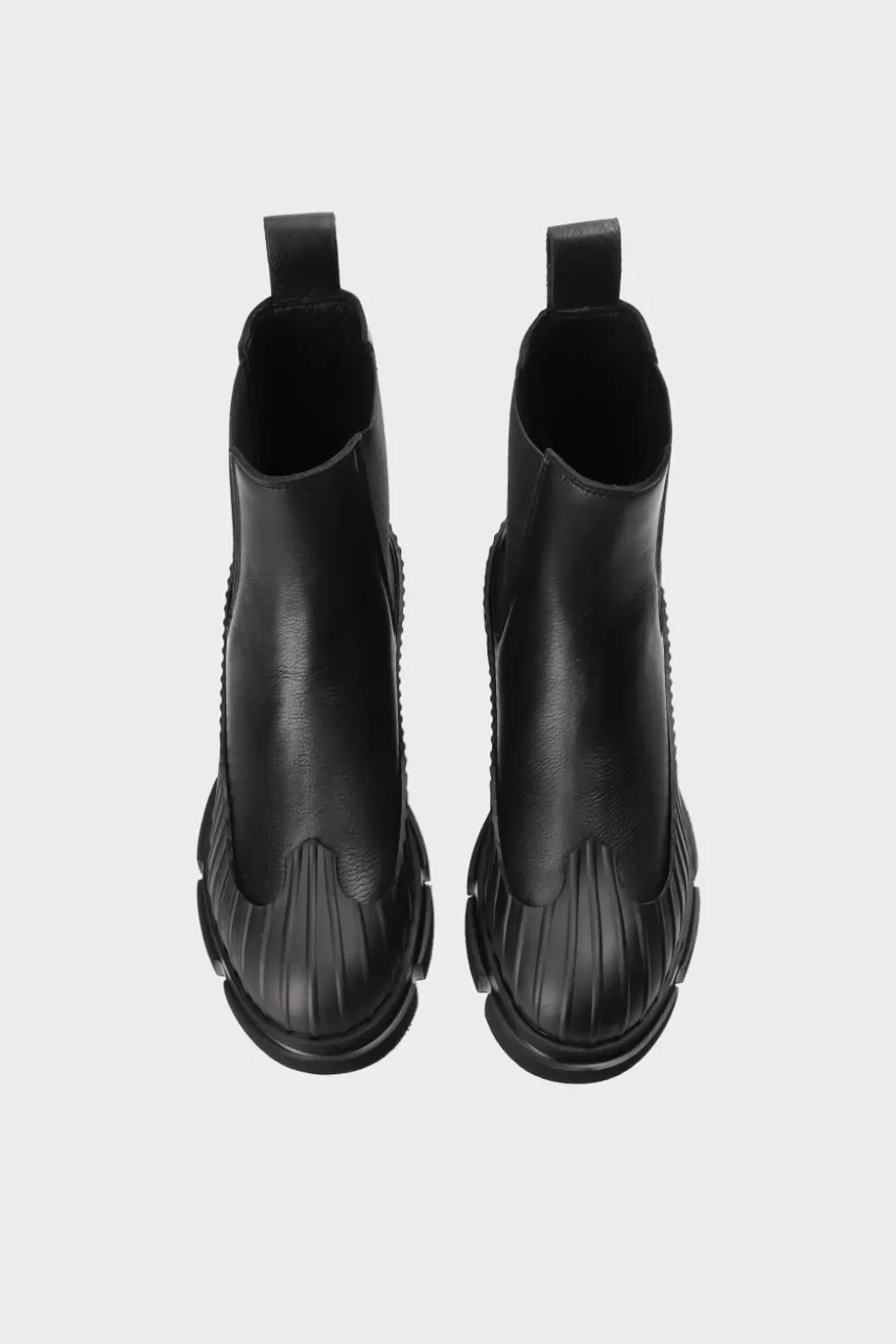 In Het Zwart. Chelsealaarzen Gemaakt Van Zacht, Glad Leer. Enkelhoog Chelsea-Silhouet. Ronde Dop. Geribbelde Rubberen Rand Boven De Zool. Elastische Zijpanelen. Trek De Lus Aan De Schacht. Een Expressieve Maar Toch Minimalistische Stijl.Onze Schoenen Zijn Ontworpen In Kopenhagen En Vervaardigd In Europa. Het Leer Is Afkomstig Van Geselecteerde, Door Een Familie Gerunde Fabrieken In Italië.