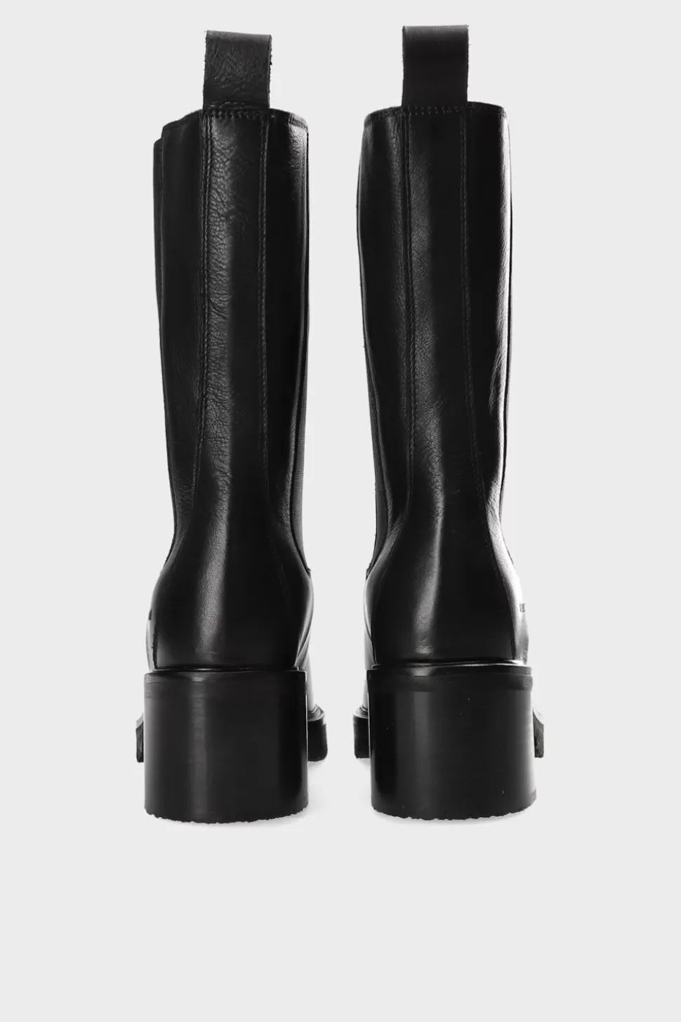 In Het Zwart. Hoge Laarzen Gemaakt Van Glad Leer. Met Geborduurde Details En Een Treklusje Op De Schacht. Elastische Inzetstukken Aan De Zijkanten. Een Expressieve Stijl Die Een Elegante Indruk Achterlaat.Onze Schoenen Zijn Ontworpen In Kopenhagen En Vervaardigd In Europa. Het Leer Komt Uit Geselecteerde, Door Een Familie Gerunde Fabrieken In Italië.