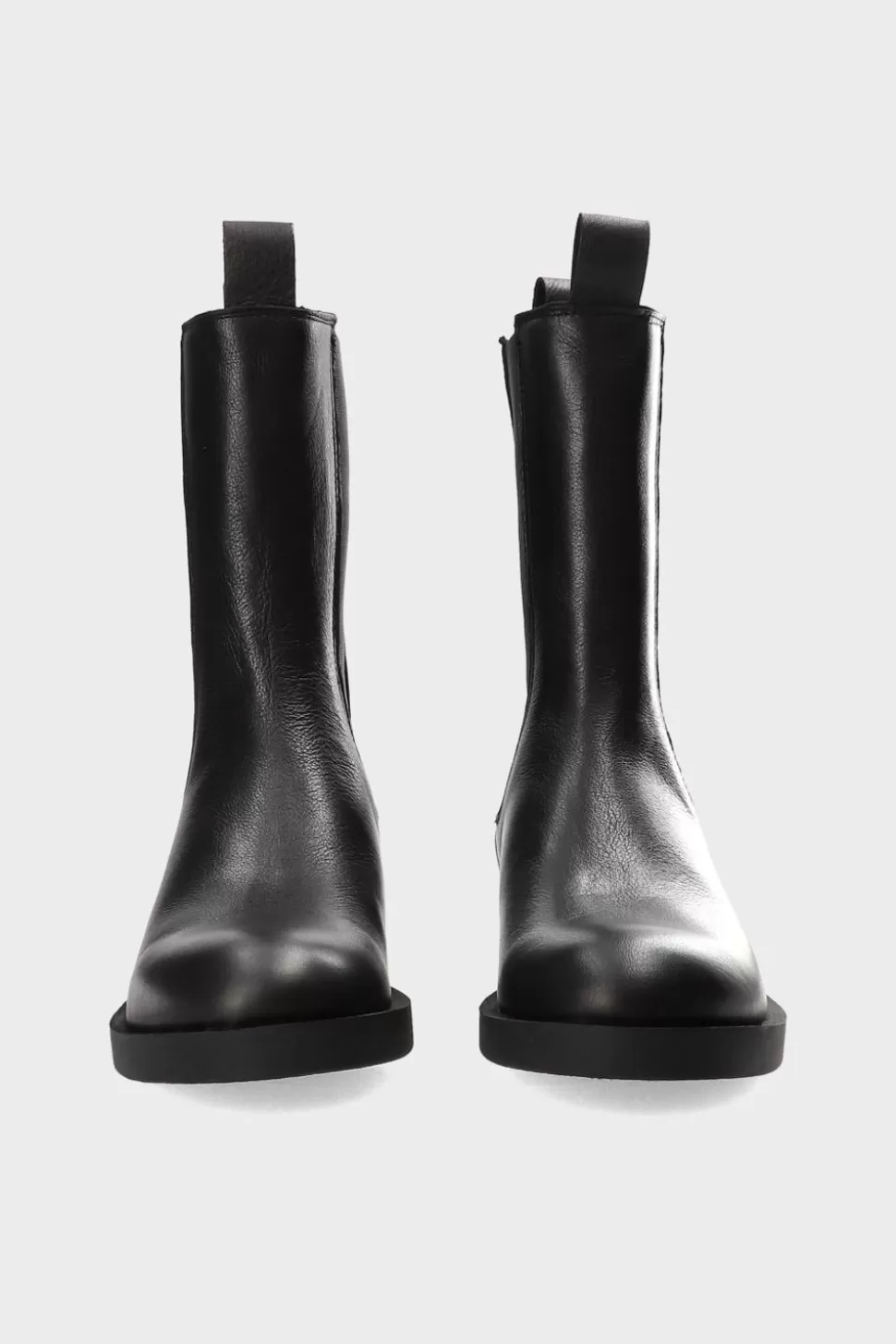 In Het Zwart. Hoge Chelsea Boots Gemaakt Van Glad Leer. Minimalistisch Silhouet. Elastische Zijpanelen. Geborduurde Details. Trek Lussen Aan De Schacht. Iets Taps Toelopend Teengedeelte. Gladde Rubberen Zool Die Goede Grip Biedt. Elegante Chelsea-Laarzen In Een Minimalistisch Design.Onze Schoenen Zijn Ontworpen In Kopenhagen En Gemaakt In Europa. Het Leer Is Afkomstig Van Geselecteerde, Door Een Familie Gerunde Fabrieken In Italië.