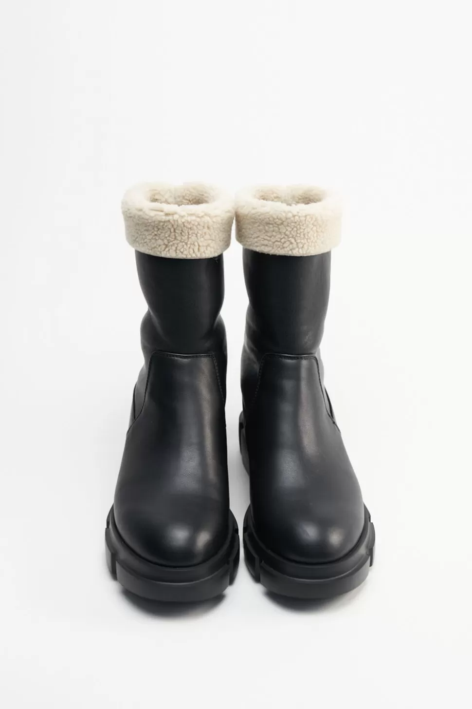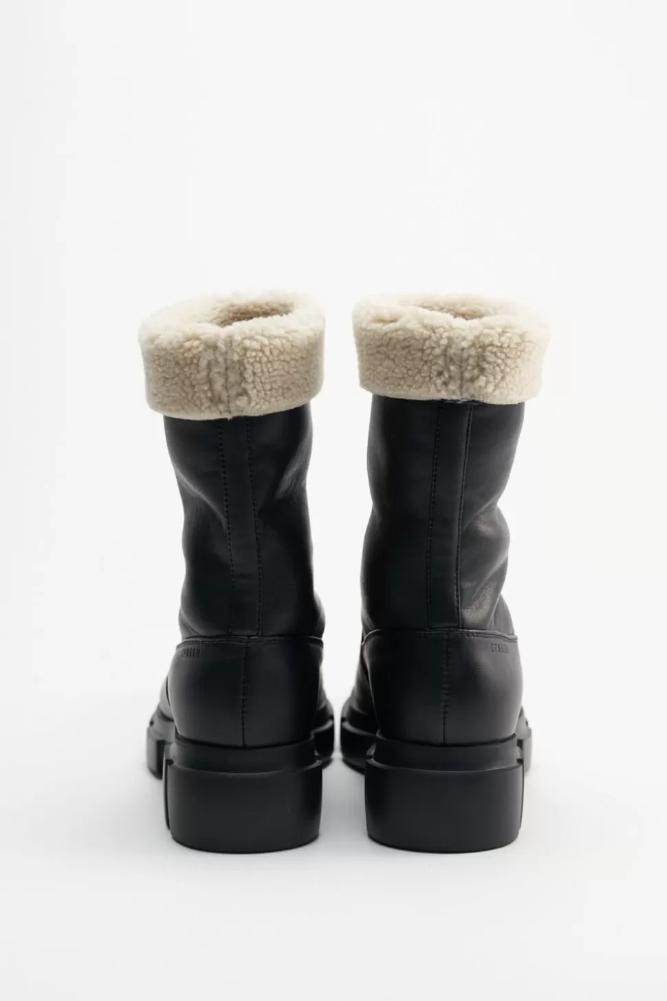 In Het Zwart. Enkellaarzen Gemaakt Van Veganistisch Nappaleer Met Teddyvoering. Getailleerd Silhouet. Schacht Voor Het Oprollen. Ronde Dop. Contrasterende Elementen En Geborduurde Details. Uitneembare Binnenzool. Een Veelzijdige Stijl Die U Flexibel Houdt.Onze Schoenen Zijn Ontworpen In Kopenhagen En Gemaakt In Europa. Het Leer Is Afkomstig Van Geselecteerde, Door Een Familie Gerunde Fabrieken In Italië.