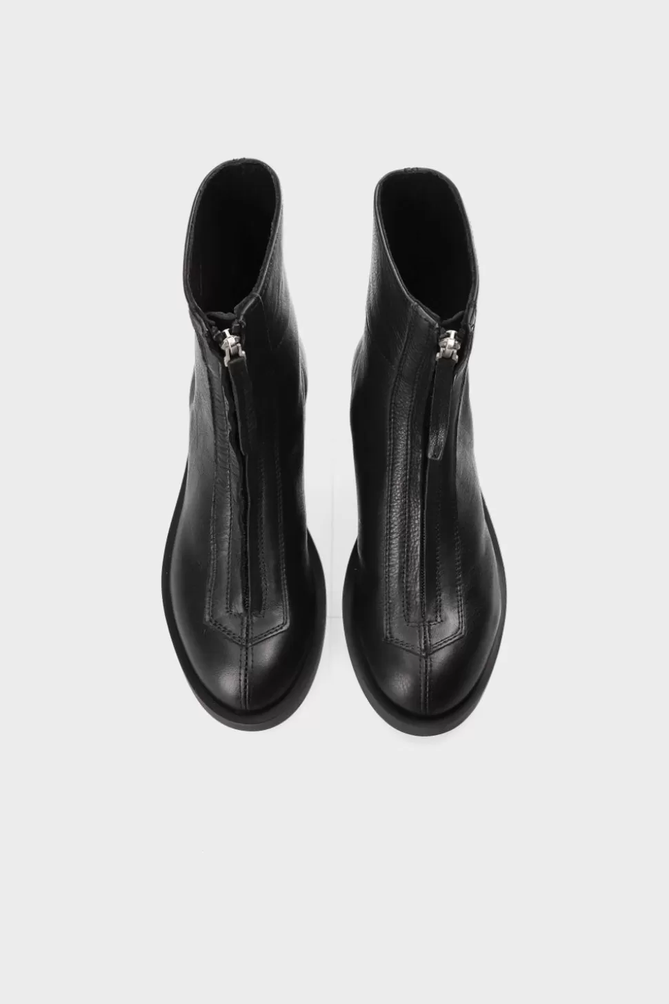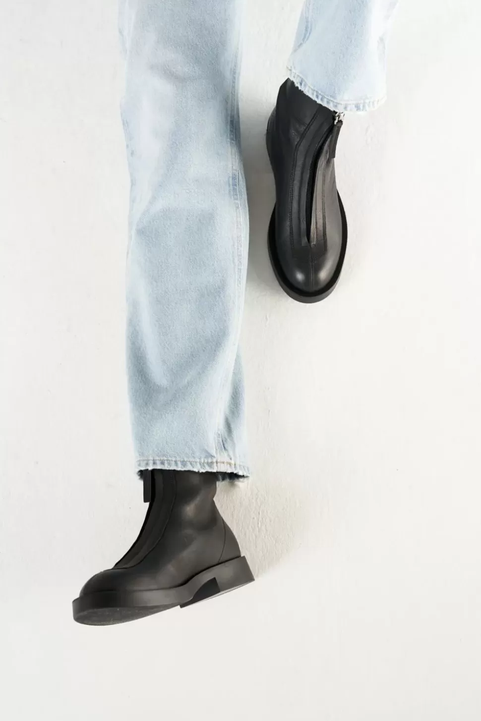 In Het Zwart. Enkellaarzen Gemaakt Van Glad Leer. Minimalistisch Silhouet. Rits Aan De Achterkant Van De Schoen. Aparte Elementen. Geborduurde Details. Logo Aan De Buitenkant. Ronde Neus. Gladde Rubberen Zool Die Goede Grip Biedt. Minimalistische Enkellaarsjes Met Verrassende Details.Onze Schoenen Zijn Ontworpen In Kopenhagen En Gemaakt In Europa. Het Leer Komt Uit Geselecteerde Familiebedrijven In Italië.
