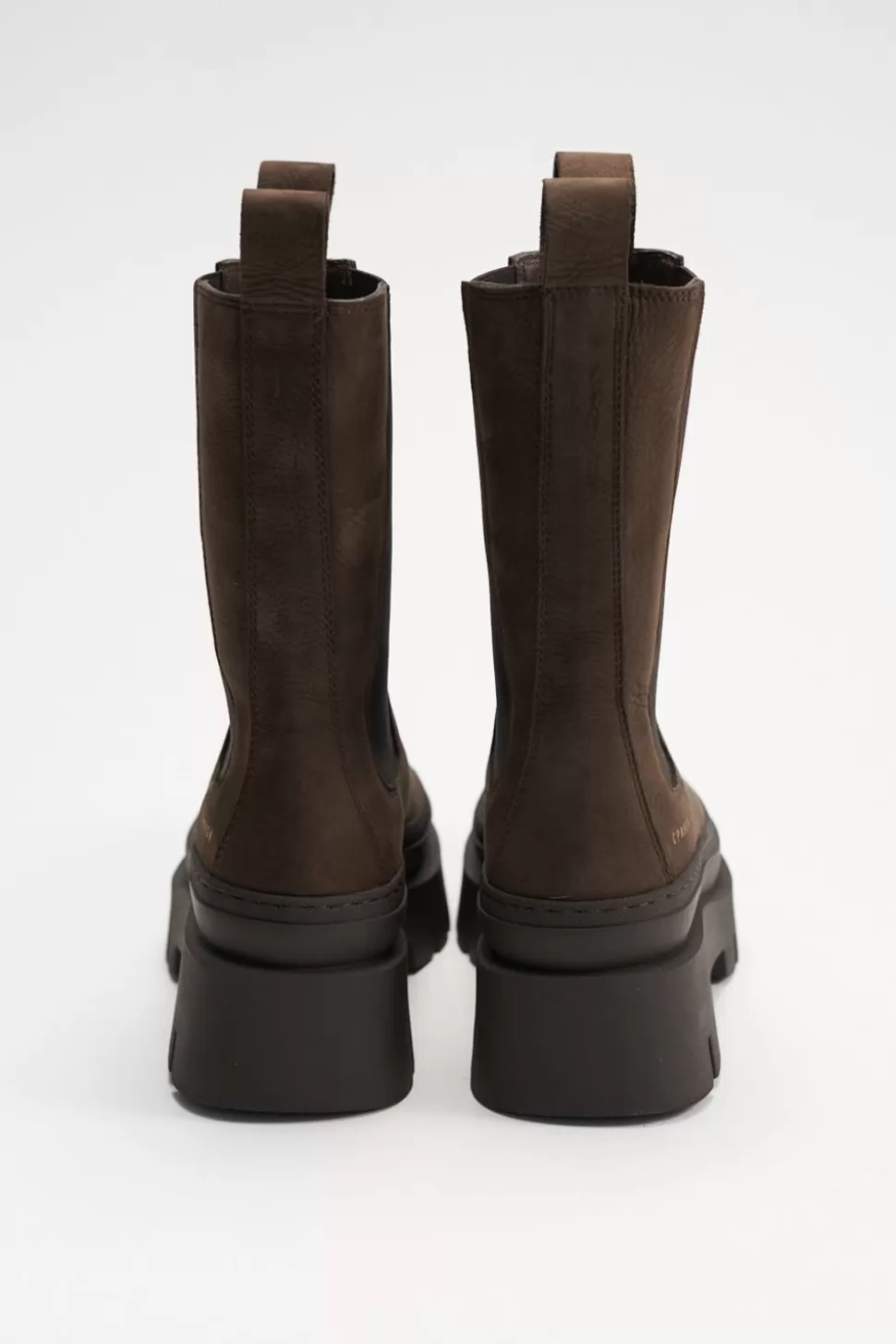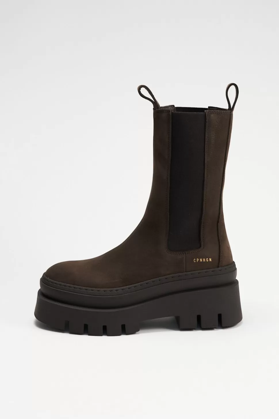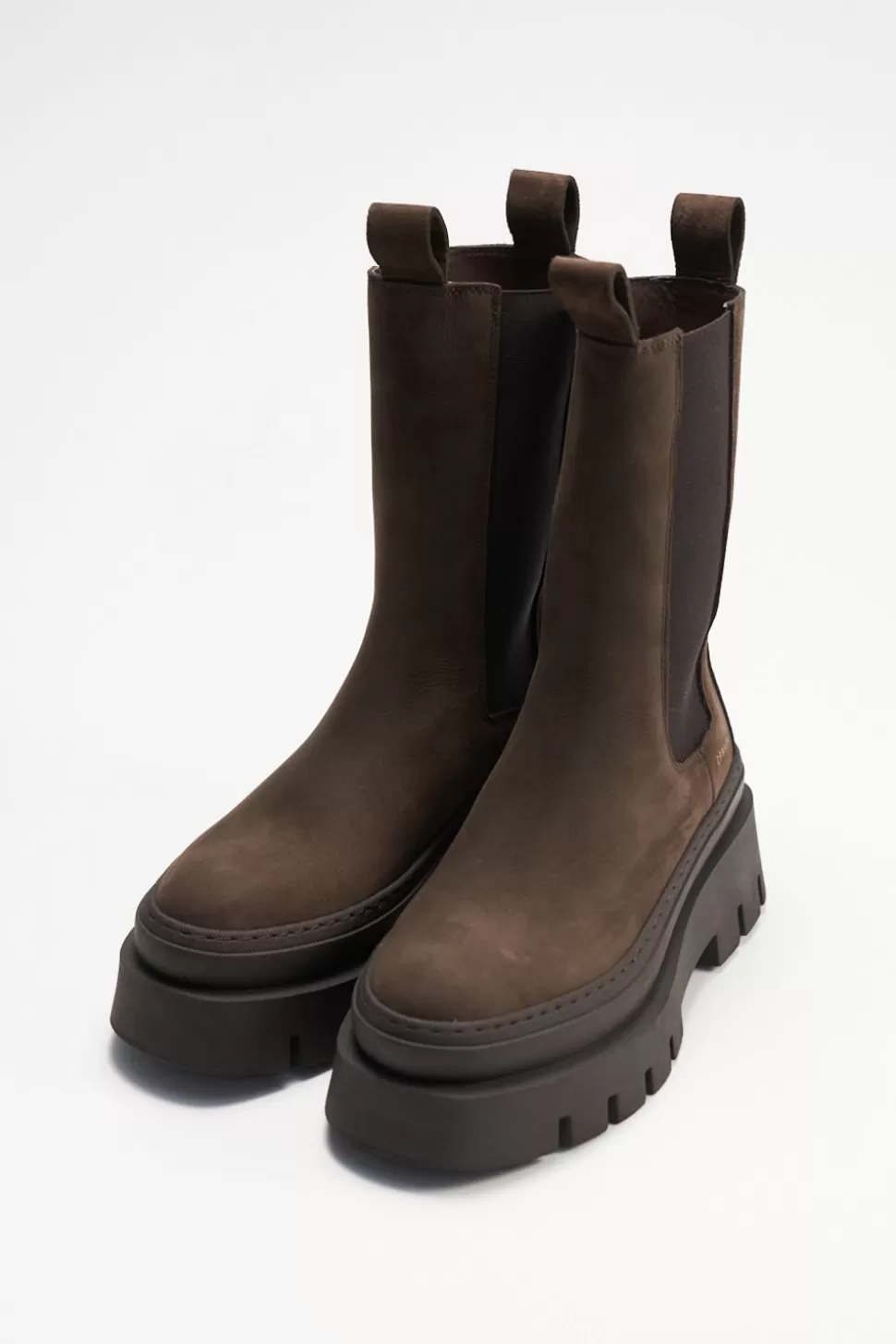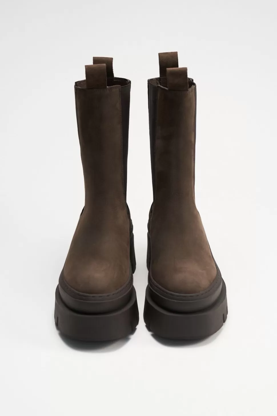 In Chocolade. Middenhoge Chelsea Boots Gemaakt Van Zacht Nubuckleer. Langwerpig Chelsea-Silhouet. Ronde Dop. Elastische Inzetstukken. Twee Treklussen Op De Schacht. Goudkleurig Logo Aan De Buitenkant. Een Monochrome Stijl Met Expressieve Details.Onze Schoenen Zijn Ontworpen In Kopenhagen En Gemaakt In Europa. Het Leer Komt Uit Geselecteerde, Door Een Familie Gerunde Fabrieken In Italië.