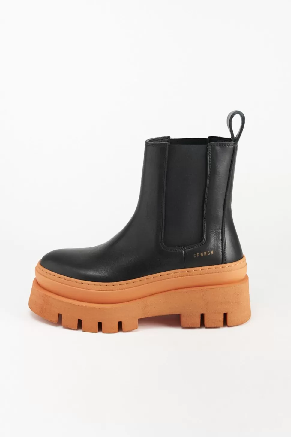 In Zwart En Oranje. Chelsealaarzen Gemaakt Van Glad Leer. Enkelhoog Silhouet Met Een Ronde Neus. Elastische Inzetstukken. Trek De Lus Aan De Schacht. Goudkleurig Logo Aan De Buitenkant. Expressieve Platformzolen Maken Deze Stijl Tot Een Blikvanger.Onze Schoenen Zijn Ontworpen In Kopenhagen En Vervaardigd In Europa. Het Leer Komt Uit Geselecteerde Familiebedrijven In Italië.