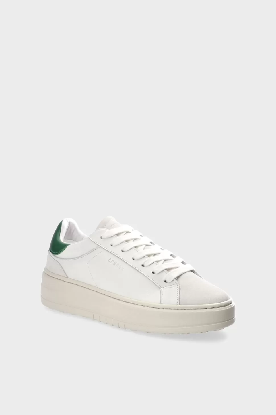 In Wit En Groen. Lage Sneakers Gemaakt Van Een Leermix. Duidelijk En Toch Stevig Silhouet. Contrasterende Elementen Met Geborduurde Details. Kleurcontrasterende, Gevoerde Hiel. Logo Aan De Buitenkant En Achterkant Van De Zool. Vetersluiting Aan De Voorkant. Ronde Dop. Sportieve ‘Scooter’ Zool Met Licht Profiel. Onverwachte Kleurdetails Geven Deze Minimalistische Retro Sneakers Een Bijzondere Uitstraling.Onze Schoenen Zijn Ontworpen In Kopenhagen En Gemaakt In Europa. Het Leer Is Afkomstig Van Geselecteerde, Door Een Familie Gerunde Fabrieken In Italië.