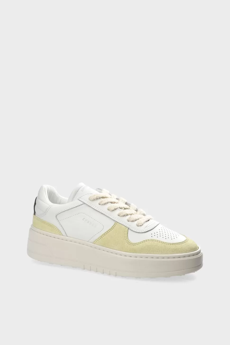 In Wit En Geel. Lage Sneakers Gemaakt Van Een Leermix. Grof Silhouet. Contrasterende Elementen Met Geborduurde Details En Geperforeerde Patronen. Gevoerde Hiel. Logo Aan De Buitenkant En Achterkant Van De Zool. Vetersluiting Aan De Voorkant. Ronde Dop. Sportieve ‘Scooter’ Zool Met Licht Profiel. Retro Sneakers Met Harmonieuze Kleurdetails.Onze Schoenen Zijn Ontworpen In Kopenhagen En Gemaakt In Europa. Het Leer Is Afkomstig Van Geselecteerde, Door Een Familie Gerunde Fabrieken In Italië.