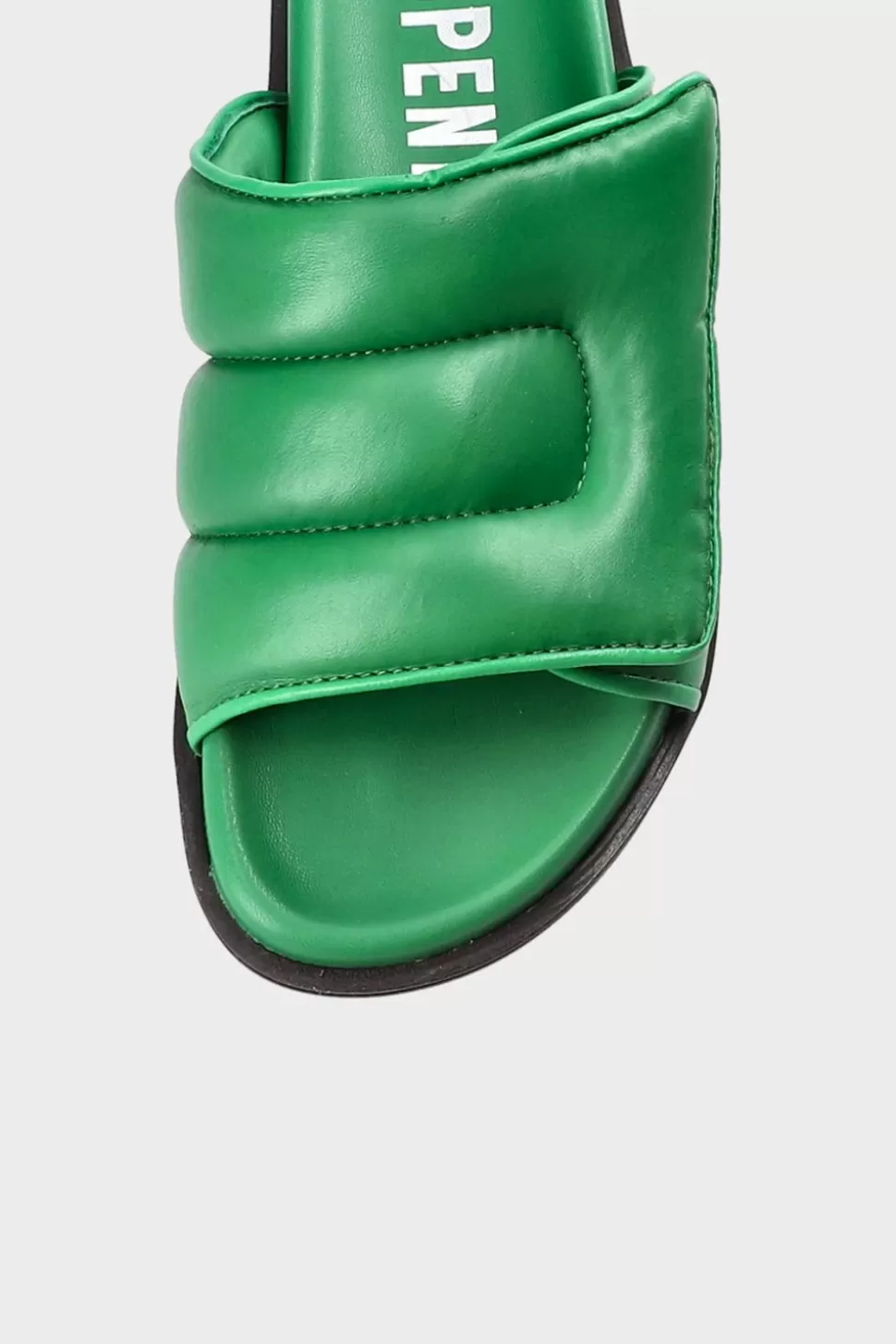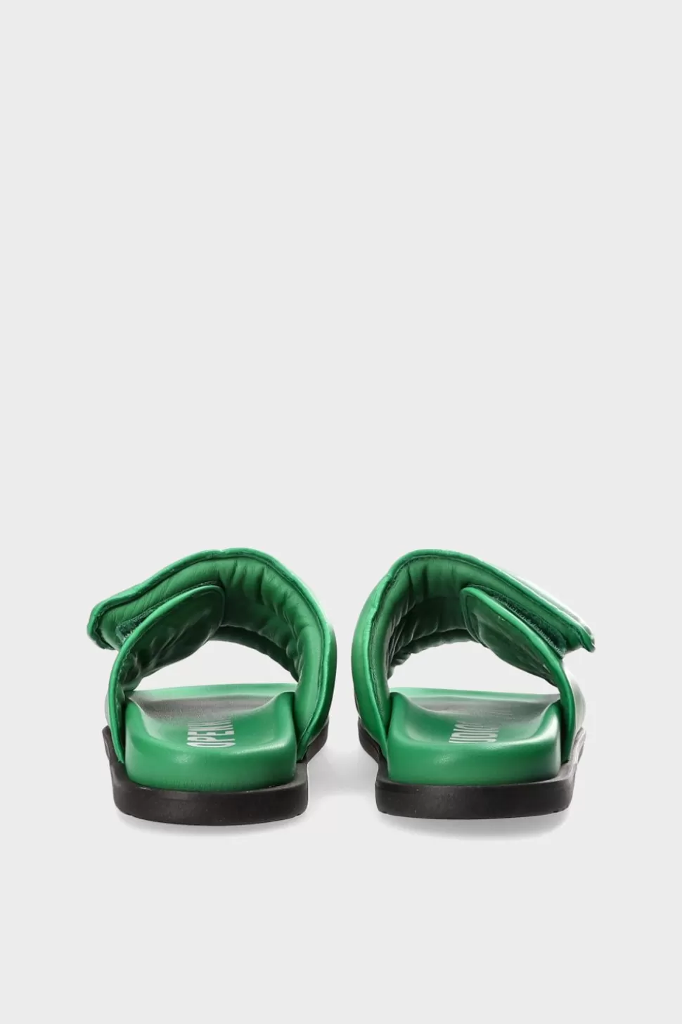 In Felgroen. Slippers Van Zacht Nappaleer. Silhouet Met Enkele Riem. Met Een Verstelbare Brede Band En Geborduurde Details. Tonale Binnenzool Met Een Lichtgewicht Anatomisch Voetbed En Opvallende Branding. Platte Contrastzool. Minimalistische Slippers Met Een Zacht Silhouet.Onze Schoenen Zijn Ontworpen In Kopenhagen En Gemaakt In Europa. Het Leer Is Afkomstig Van Geselecteerde, Door Een Familie Gerunde Fabrieken In Italië.