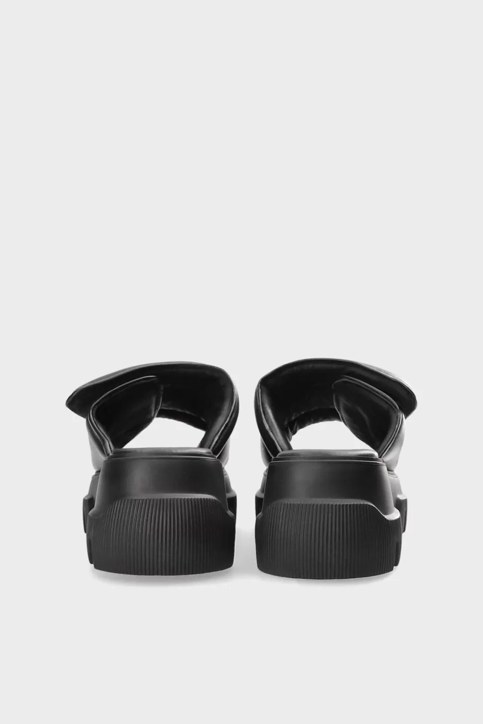 In Het Zwart. Sandalen Van Zacht Nappaleer. Silhouet Met Enkele Riem. Met Een Verstelbare Brede Band En Geborduurde Details. Binnenzool Met Subtiele Branding. Dikke Platformzool Met Opvallend Profiel En Blokhak. Monochrome Slippers Met Expressieve Details.Onze Schoenen Zijn Ontworpen In Kopenhagen En Gemaakt In Europa. Het Leer Komt Uit Geselecteerde Familiebedrijven In Italië.